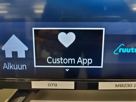 Then, how can we test this in our Smart-TV? First, you need a memory stick. Create starturl.txt-file to the root of the memory stick. Open the text file, write the apps web address there and save the file. After that put the memory stick to the Smart TV’s USB port, press MENU and use the remote control to press keys at this order 4-7-2-5. A “secret menu” appears and select USB Operations from the menu. Wait a moment and then go back to the main menu and you should see a Custom App –icon in Apps-menu.![]()